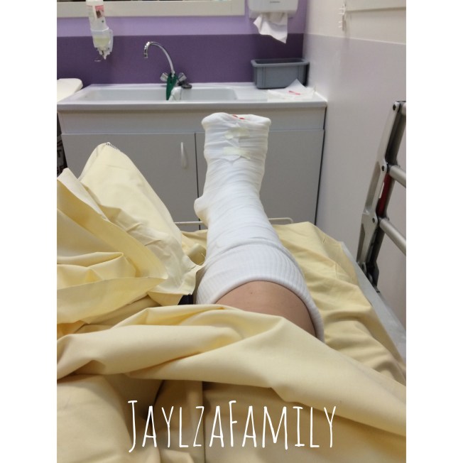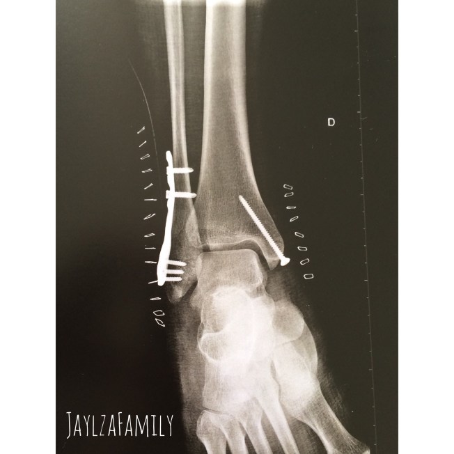 Entre les 2, une chute dans les escaliers, 3 minutes après la première photo, une luxation et une double fracture de la cheville droite! Rien que ça!