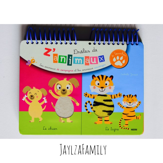 On découvre les animaux domestiques et sauvages, les mamans et leur bébé, et en plus on peut toucher tout ce petit monde! C’est aussi un jeu mémo, car il faut retrouver les paires d’animaux!