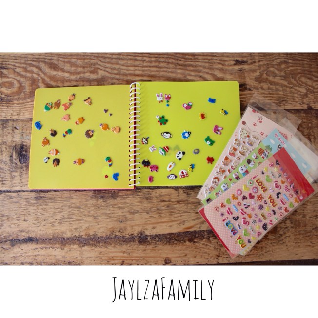 Ici on aime les cahiers avec gommettes intégrées, genre :