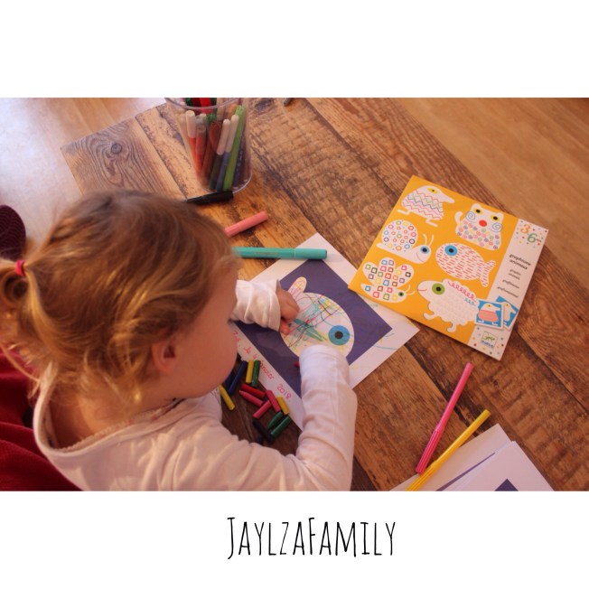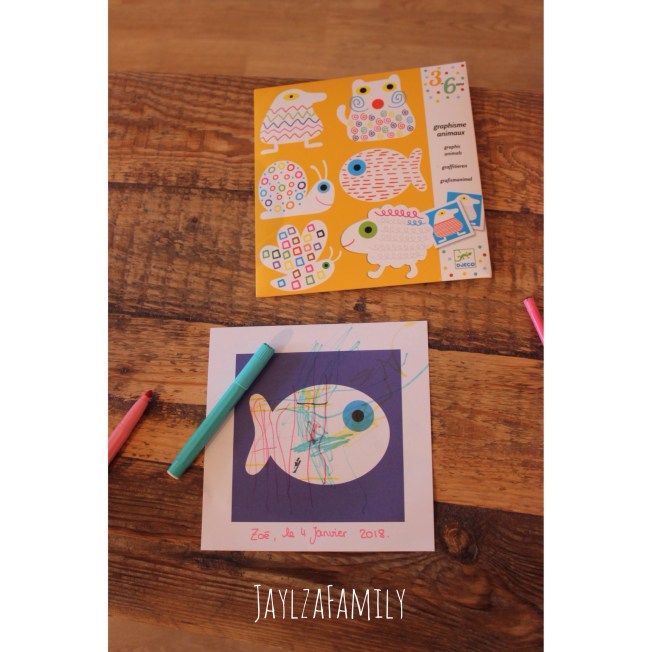 On ne s’est pas laissé aller pour autant, et on a (re)sorti une petite activité proposée par la marque Djeco (qu’on affectionne beaucoup pour tout ce qui est activités manuelles), Graphisme Animaux.