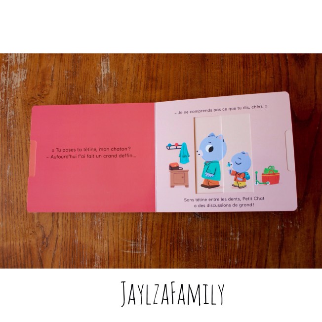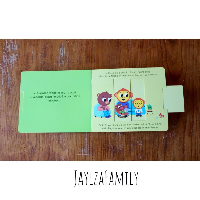 Notre avis : Les livres de cette collection sont bien faits; il ne s’agit pas d’une histoire avec des personnages précis. Petit bémol de culpabilisation, il est écrit dans le livre qu’après 3 mois, les tototes ne servent plus à rien! Autant te dire qu’on avait l’air gourd quand on a lu ça à Tchoupine qui a encore la sienne à 3 ans!