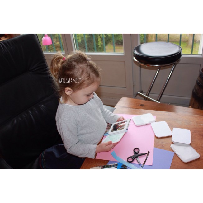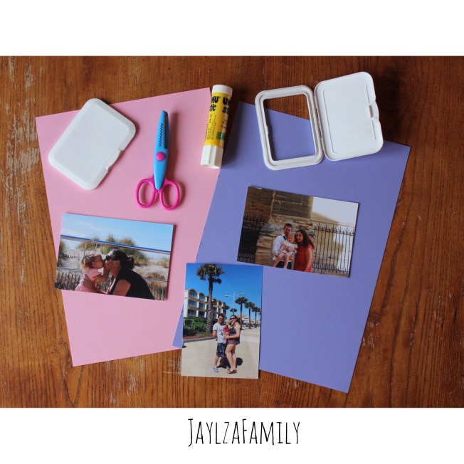 Première étape, tu choisis tes photos. Ensuite tu les découpes à la taille de ton couvercle de lingettes.