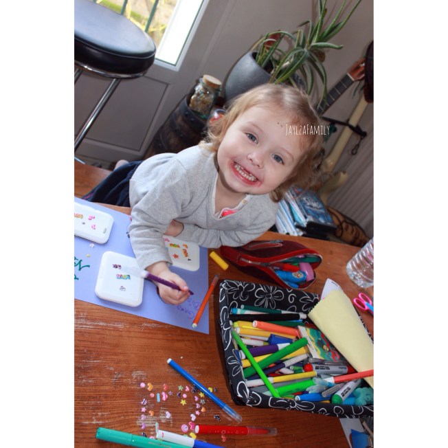 - Des feutres, des gommettes, des paillettes… Tout pour que ta chère tête blonde puisse customiser le poster à sa guise.