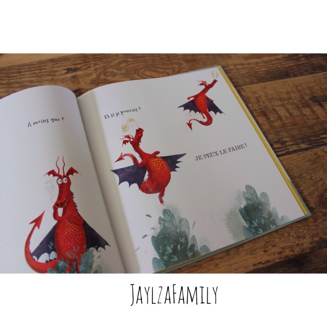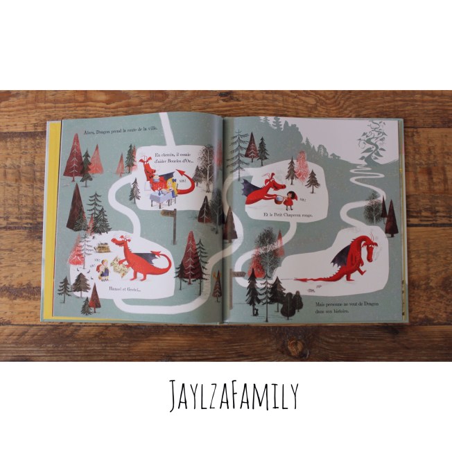 Le résumé : C’est l’histoire d’un dragon qui pour une fois aimerait devenir le héros de son histoire… Impossible dis-tu?! Attends de lire cette aventure et tu verras! Dans ce joyeux conte détourné qui met en valeur le courage et la personnalité, le lecteur retrouve ses personnages préférés (le Petit Bonhomme de pain d’épice, les trois petits cochons, Boucles d’Or, etc.) et leurs répliques célèbres et découvre un dragon aux qualités héroïques.