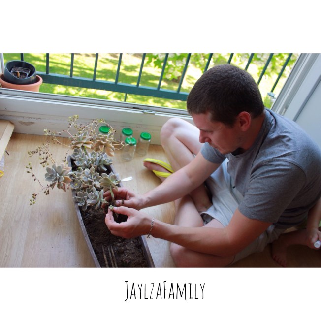 Et enfin le dernier pot. Nous l’avons pris plus grand pour y planter une plante grasse.