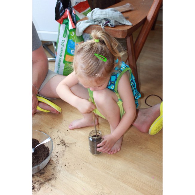 On a attendu que Papa rentre du travail. (Il aime bien patouiller la terre!)