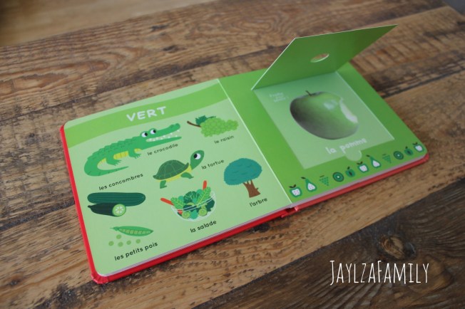 Notre avis : Un de nos coups de cœur quand Tchoupine était petite, c’est aujourd’hui lOulOu qui profite de ce livre pour sentir (enfin plutôt goûter!!!) les différentes odeurs. Elles tiennent bien dans le temps, malgré un usage excessif de ce livre! Et dans le même temps, on apprend les couleurs, elle est pas belle la vie?! (On en est tellement fan, qu’on avait pris 2 autres livres à sentir de la même collection!) (Et c’est une idée cadeau au top, originale, et pas chère!)