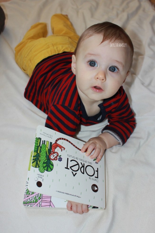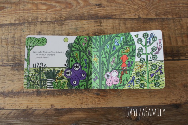 Notre avis : Fascinant, c’est le mot. Des livres sonores, tu en as eu, lu, et revu! Oui mais celui-ci a un côté mystérieux, il ne va pas te fredonner « Au clair de la Lune », plutôt l’ambiance d’une forêt profonde, où la nature règne en maître. (C’est pas la petite forêt du coin si tu vois ce que je veux dire!) Les bruits nous interpellent et on aime les écouter encore et encore. (Il existe d’autres livres de la même collection qu’on va sûrement acheter pour les découvrir!)