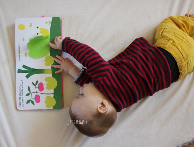 Allez, c’est parti pour la présentation des livres à mâchouiller lire/sentir/toucher/écouter pour les bébés!
