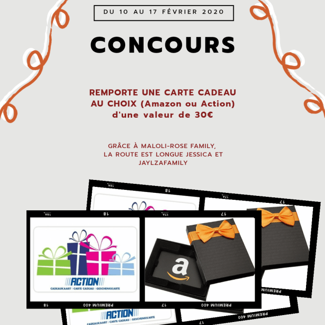 • Une carte cadeau Amazon ou Action (30€) :