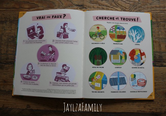 À la fin du livre, on trouve le top des gestes écolo (genre prendre le TGV au lieu de l’avion, ou réparer les objets avant de les jeter et de racheter!)