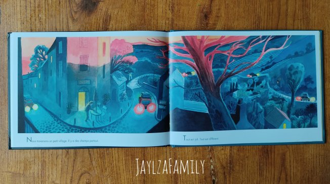 Bien que les dessins soient assez sombres (Tout se passe en pleine nuit donc^^), ils sont doux, les lumières qui percent donnent une belle luminosité. Les phrases sont courtes, le texte est explicite et permet de développer l’histoire avec son enfant. On a aimé ne pas connaître le prénom des enfants, pour encore plus s’y associer.