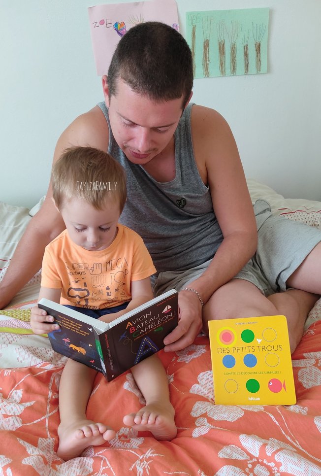 Nous voici ce soir (tardivement, je sais, mais on ne se refait pas^^) pour te présenter 2 nouveautés des éditions Hélium, spécialement conçues pour les petits dès un an, « Avion Bateau Caméléon! » et « Des petits trous« , par Delphine Chedru.
