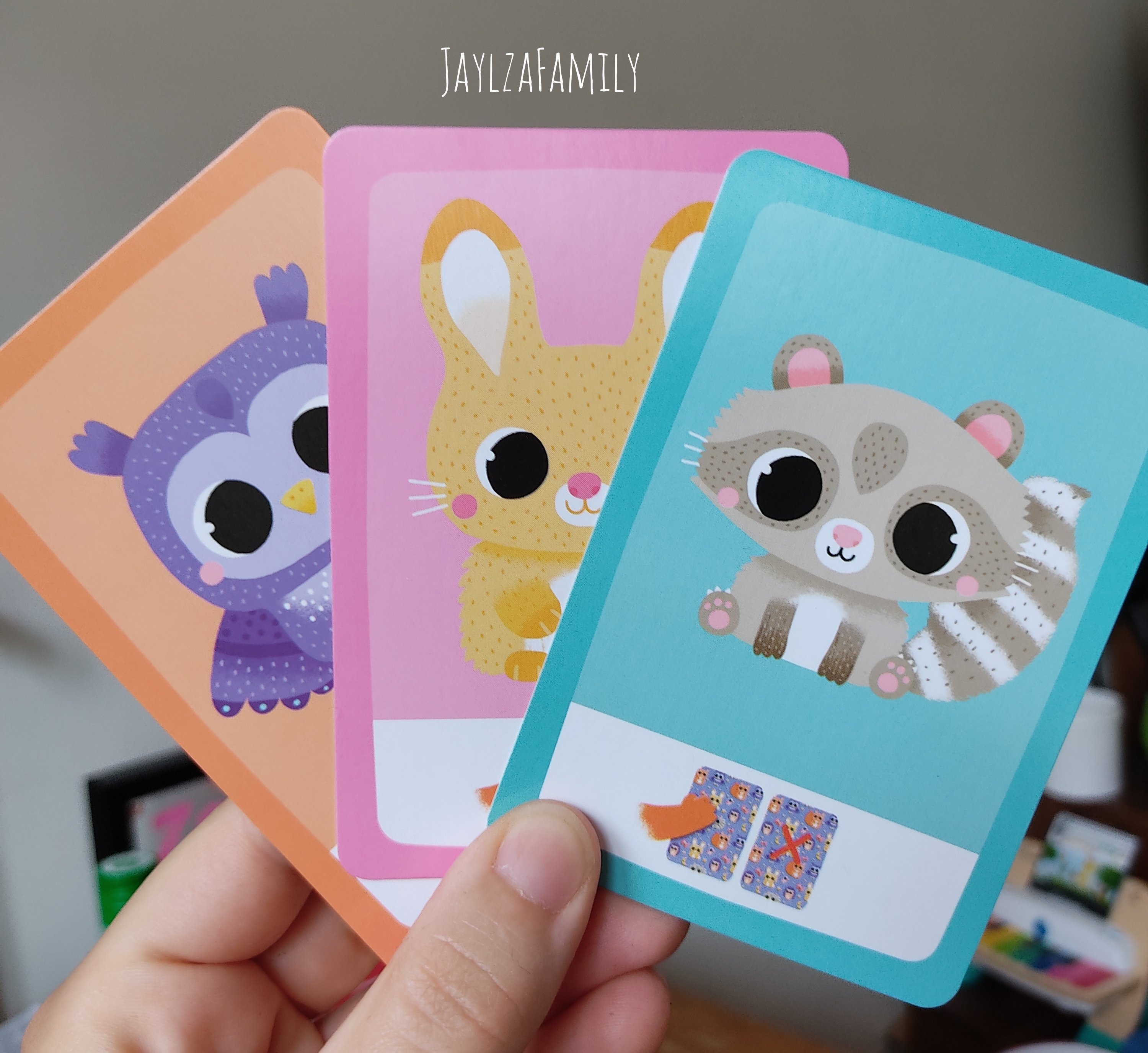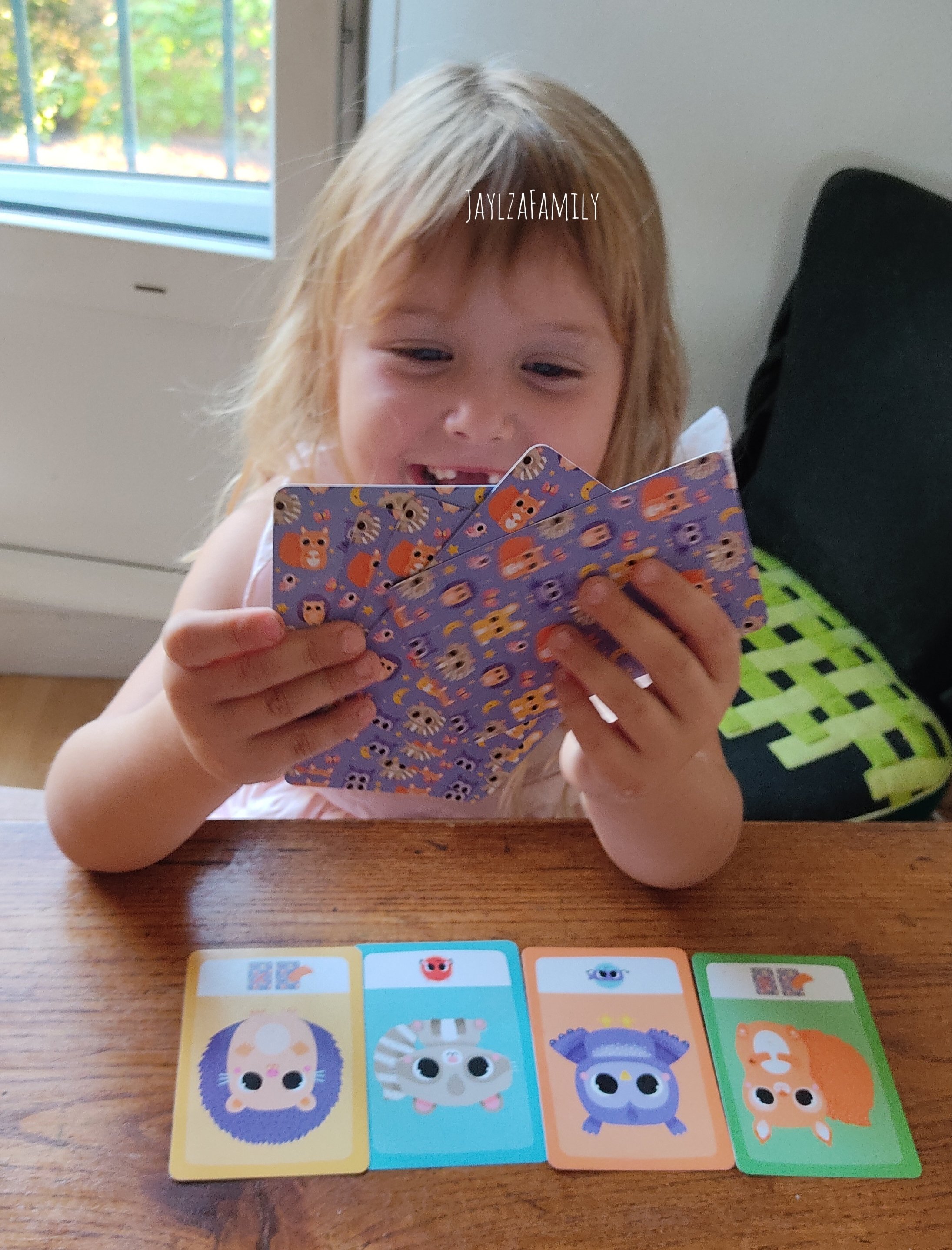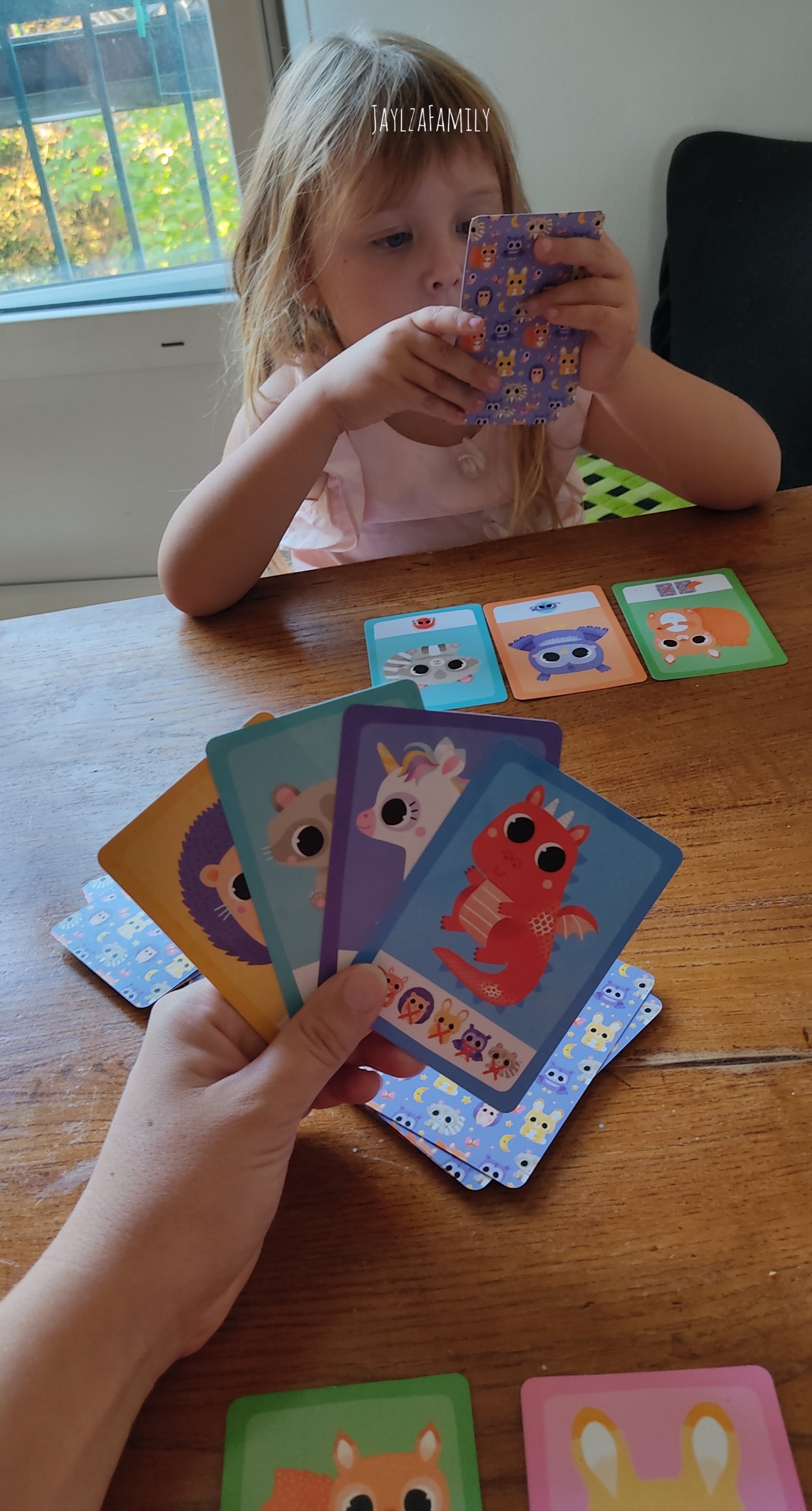 Une partie dure une dizaine de minutes, ce qui est parfait pour garder les enfants concentrés. Le jeu est attrayant de part ses dessins colorés et ses animaux trop choupinouuuus. La boîte aimantée permet de l’emporter partout (surtout dans le train nous concernant!) Les règles sont facilement compréhensibles, tout en changeant des autres jeux de cartes que l’on connaît.