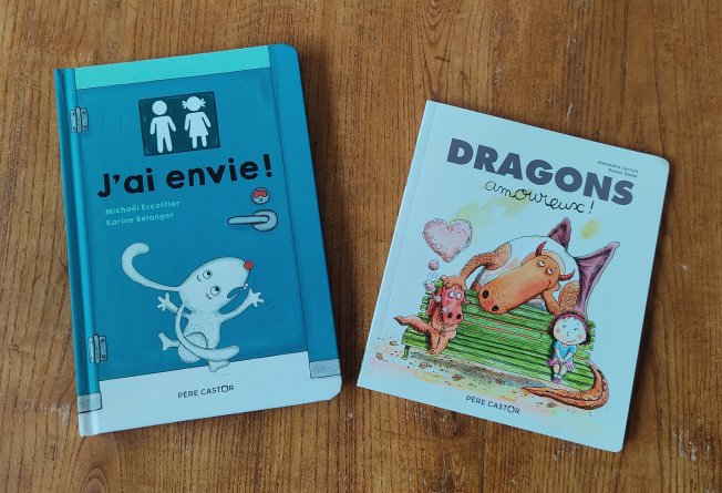 Voici à présent 2 livres pour les plus grands, « J’ai envie! » de Michaël Escoffier et Karine Bélanger, ainsi que « Dragons amoureux! » d’Alexandre Lacroix et Ronan Badel.