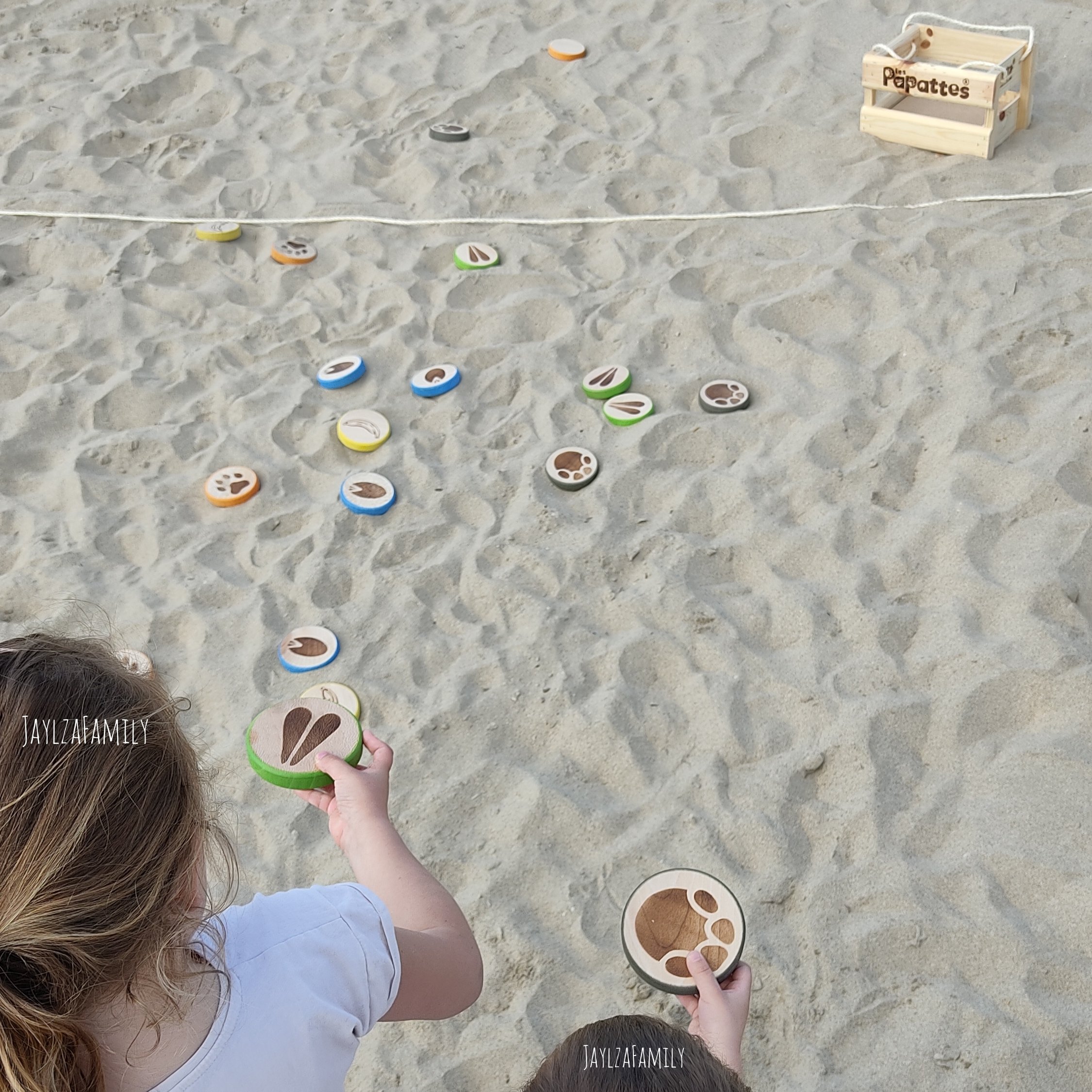 On a également apprécié la grosse boîte en bois (Bien qu’il faille avoir de la place à la maison pour la stocker 🙈) ainsi que le fait qu’il s’agisse d’un jeu d’extérieur, dans le jardin ou à la plage comme nous. (Bon après rien ne t’empêche de jouer dans ton salon si tu as la place, de la mousse aux murs et aucun bibelot^^)
