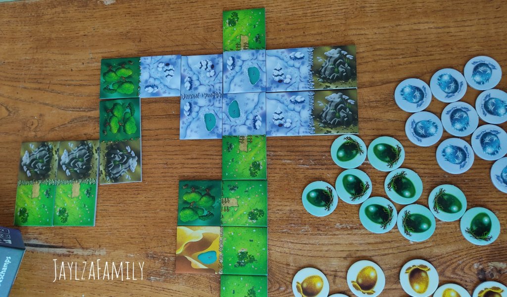 Dans ce jeu, on a aimé le décor donc, mais aussi la réflexion et la stratégie à mettre en place pour obtenir le plus de dragons possible. (Niveau astuce, je te dirai de te pencher sur les paysages ayant le moins de jetons œufs pour avoir plus de chance d’obtenir un dragon, car moins de jetons œufs = moins de jetons coquilles vides!)