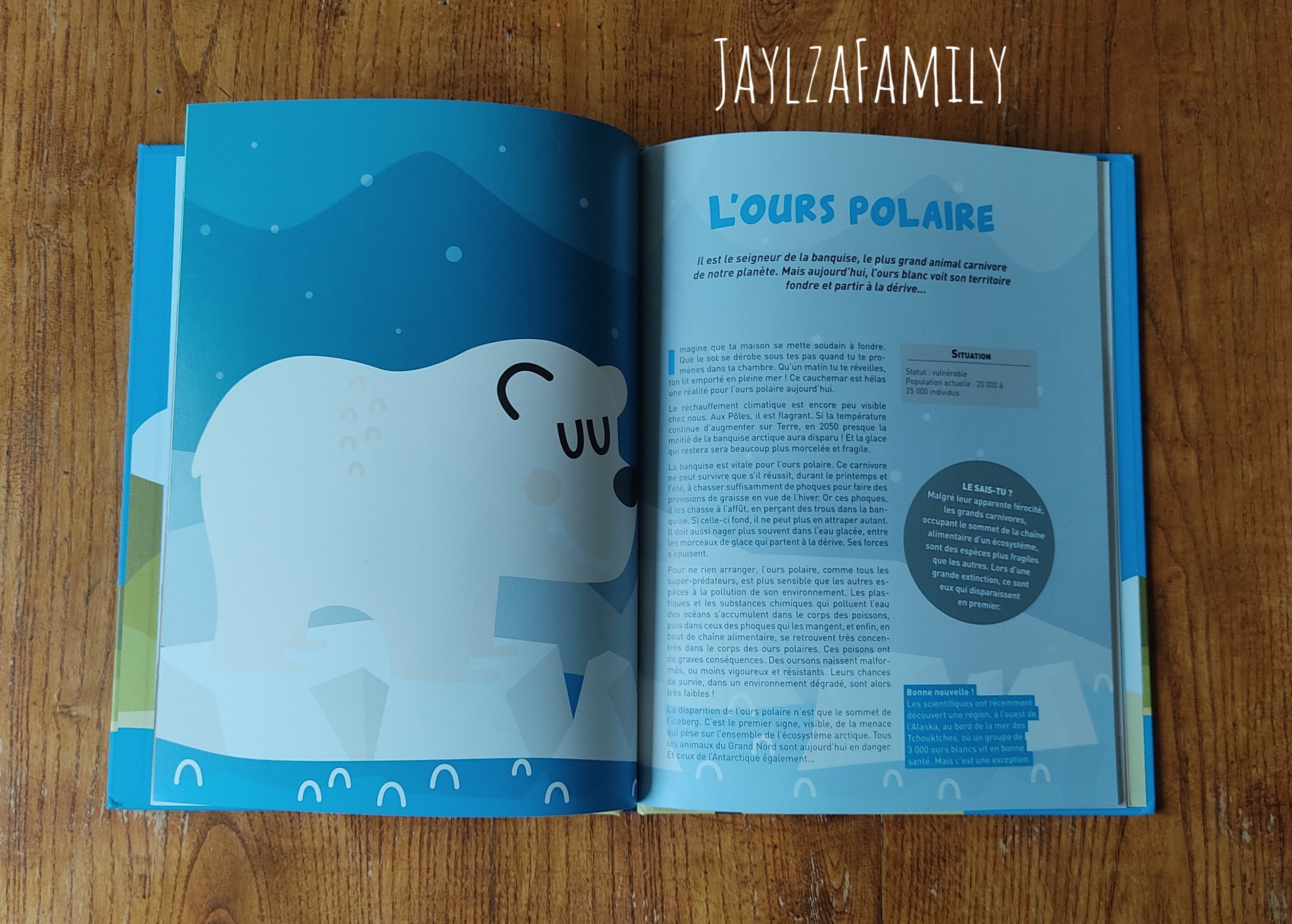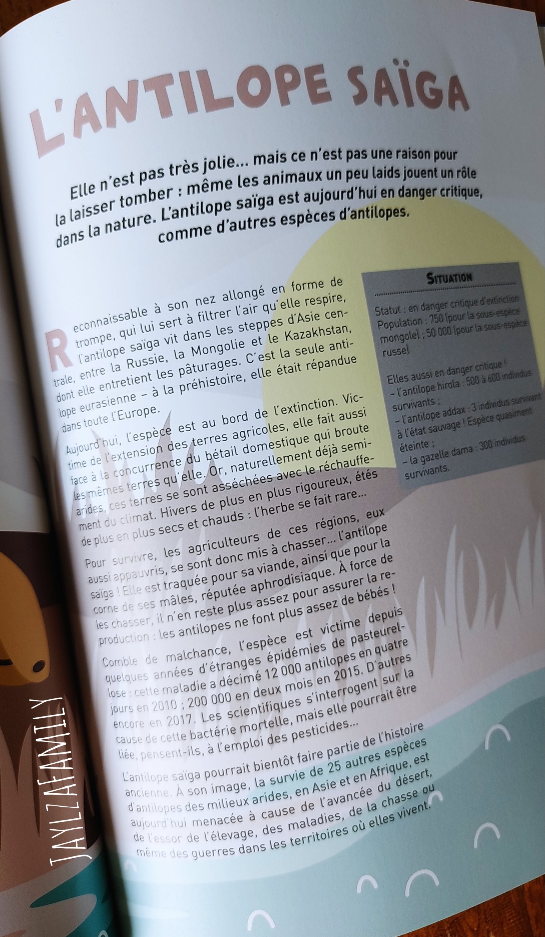 On (re)découvre des animaux des 4 coins du globe, et on rappelle l’importance de protéger notre planète (Oui, on en parle vraiment souvent, mais c’est primordial pour la génération future!)