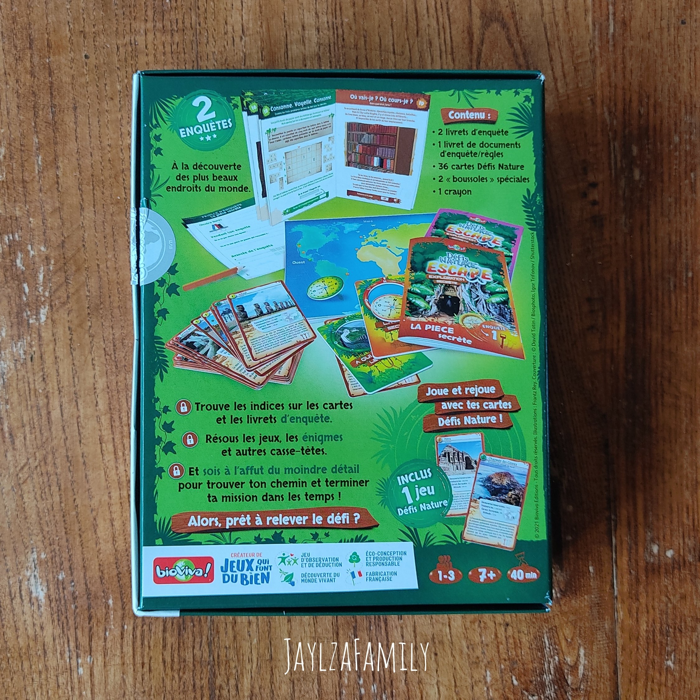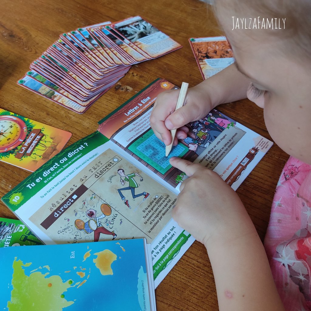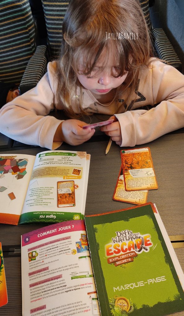 Pour te permettre d’envisager plus sereinement cette période, je te propose de découvrir un petit jeu de la marque Bioviva qui sera idéal pour un voyage en train/avion (J’dis pas voiture juste pour éviter la gerboulade, mais si tu es joueur, tu peux tenter!) ou tout simplement pour occuper nos chères têtes blondes lors d’un temps calme, j’ai nommé les défis nature escape Exploration Secrète. Rien que le nom tu kiffes je le sais. 🤭