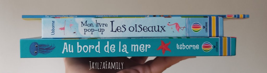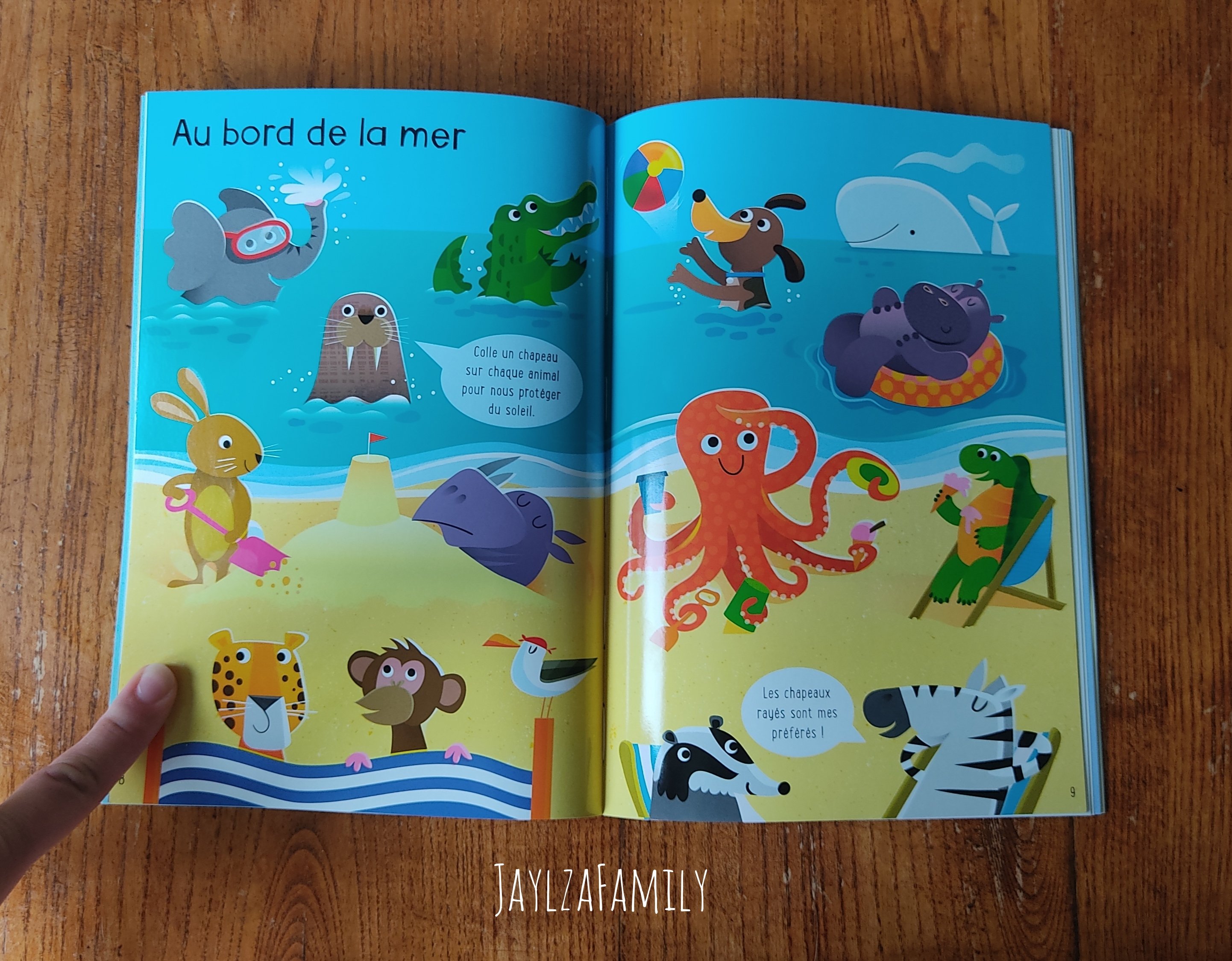 Alors ce soir, je te présente 3 nouveautés Usborne qu’on a eu la chance de recevoir, un livre sonore à toucher « Au bord de la mer« , un livre pop-up « Les Oiseaux » et enfin les petits autocollants « Chapeaux rigolos« , parfait pour avoir un avant-goût de voyage!