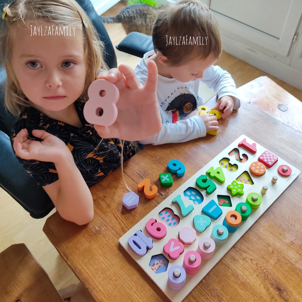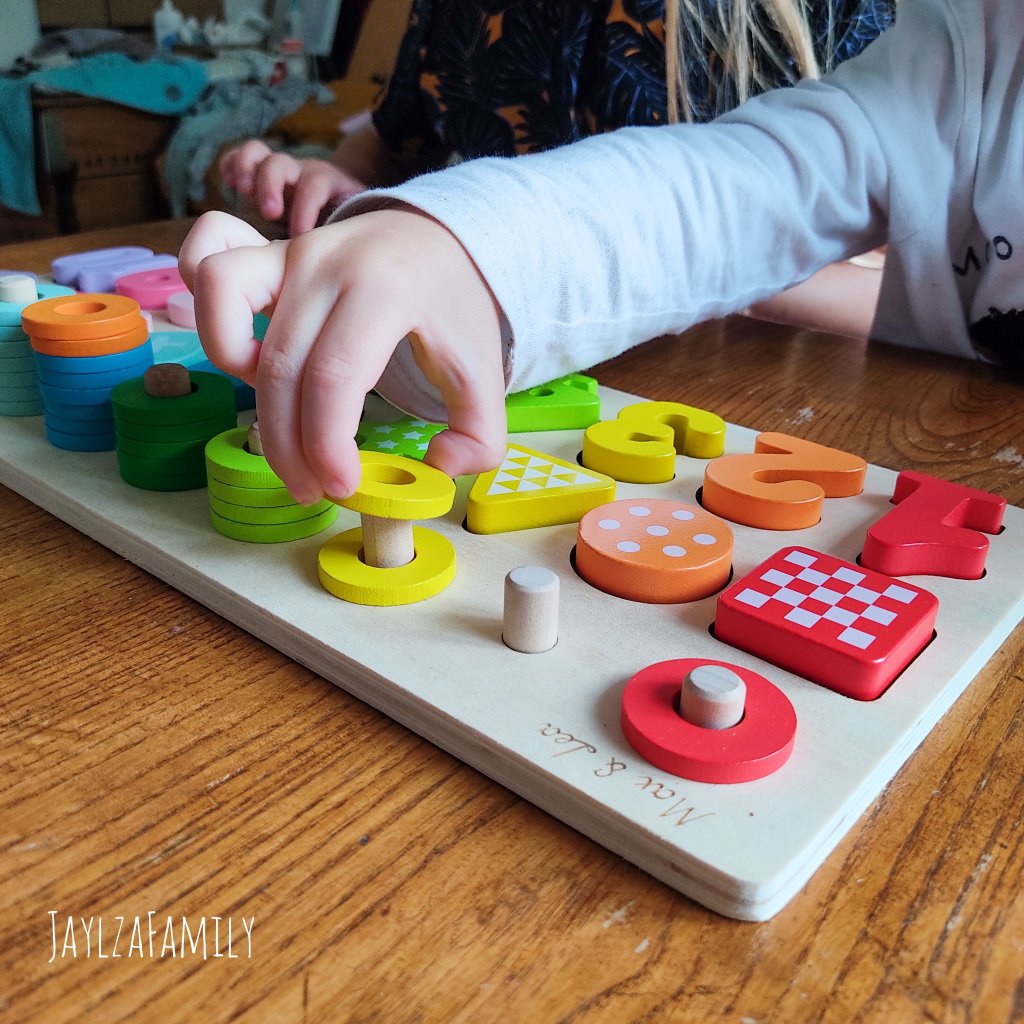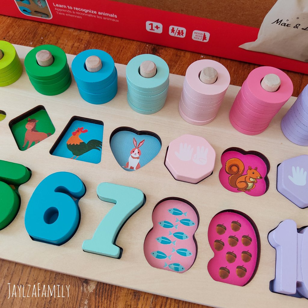 Basile a adoré manipuler, apprendre les chiffres et leurs différentes représentations, revoir les couleurs, les formes et les animaux. Il a aimé faire des associations, et avec son p’tit côté maniaque, je me suis amusée à tout mélanger pour qu’il prenne plaisir à tout ranger! (J’vais le faire avec le bazar de sa chambre bientôt, on verra si ça fonctionne aussi bien^^)