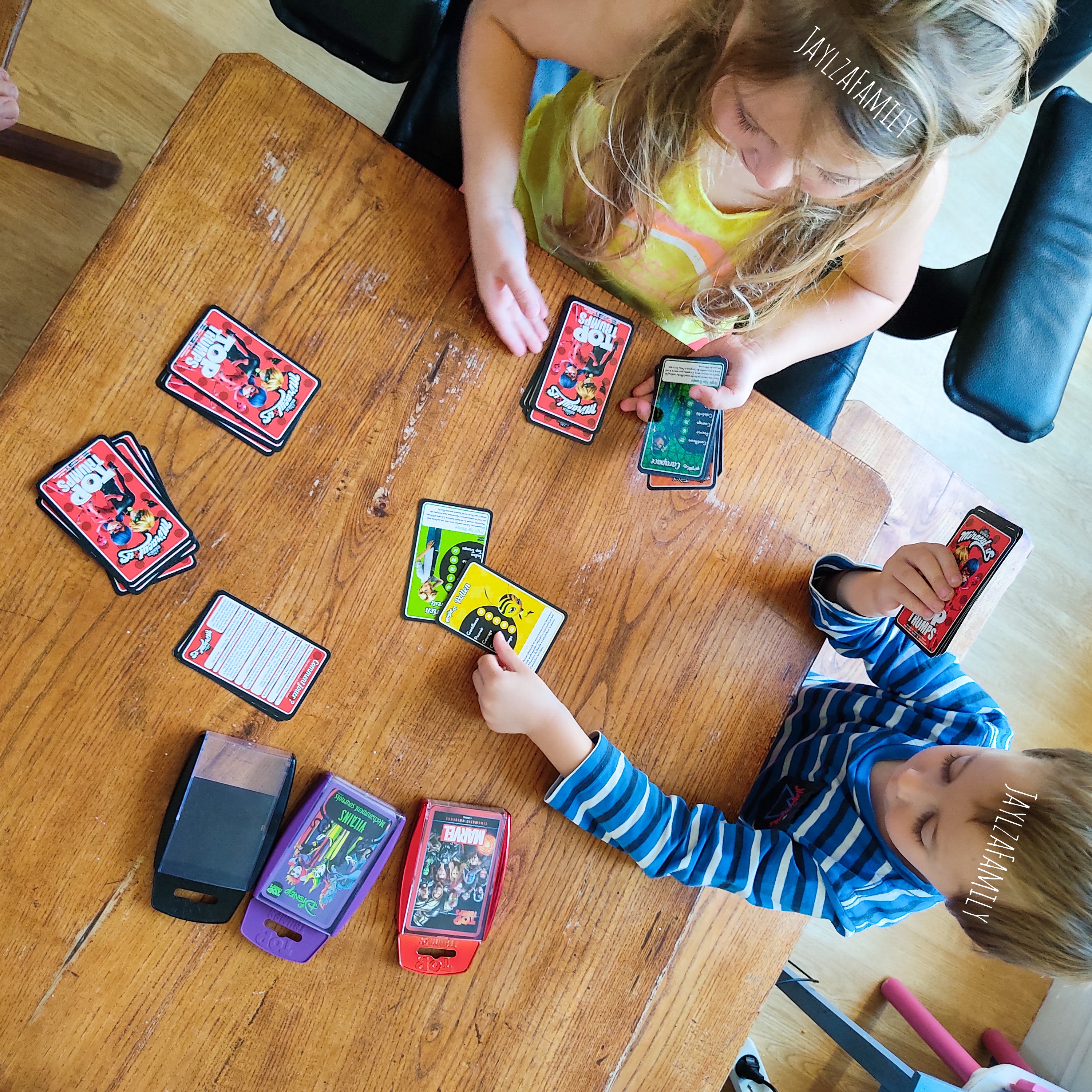 Nous avons surtout joué au jeu Miraculous (Ouais, c’est plus la cible pour le moment^^). Et même si Zoé ne lit pas encore, elle sait reconnaître les chiffres, donc après avoir appris par cœur les caractéristiques, Madame nous a mis la misère avec ses cartes!