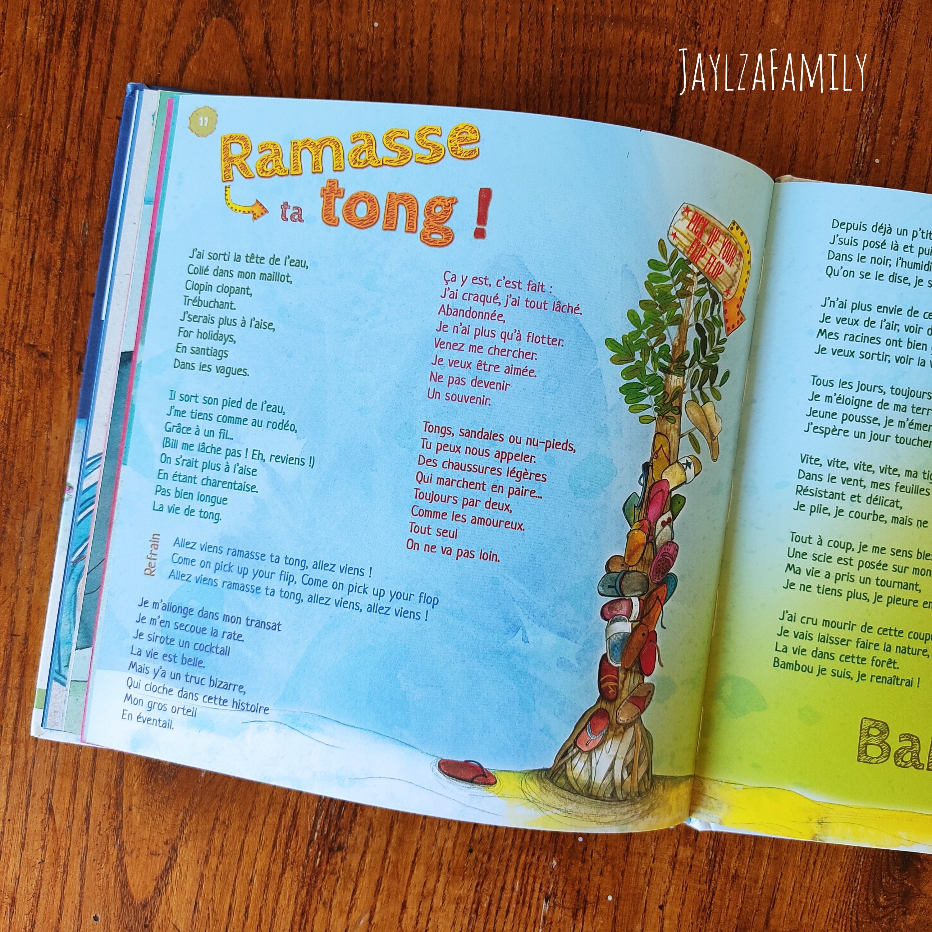 Les chansons sont rythmées, joyeuses malgré le message qu’elles font passer. Au début du livre, un QR code te permettra d’écouter la musique sans avoir de mange-disques (Si, si on dit ça, ou Walkman aussi ça marche! 🤪) Tu peux acheter le livre avec ou sans le CD d’ailleurs. 14 chansons à lire et à écouter, un vrai régal pour parler d’un sujet qui nous concerne tous.