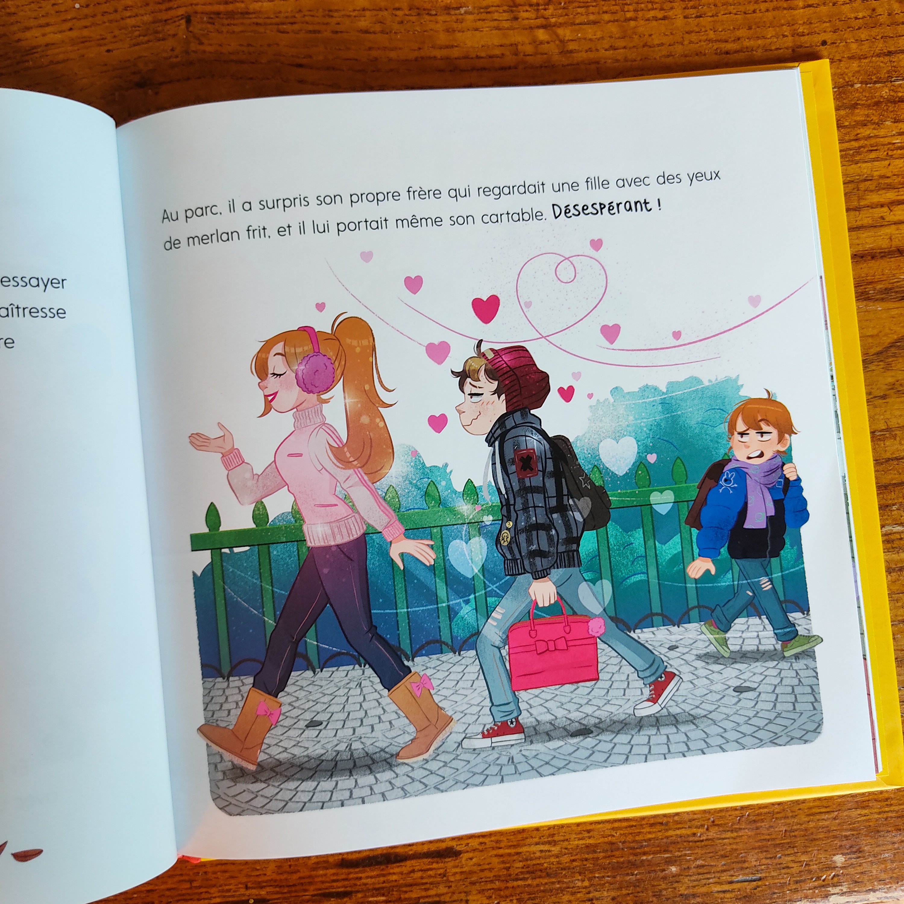 On a bien évidemment adoré les dessins, et le fait que le livre parle d’Amour avec un grand A. Le fraternel, le familial mais également l’amour adolescent. 40 pages d’humour et d’amour pour te servir!