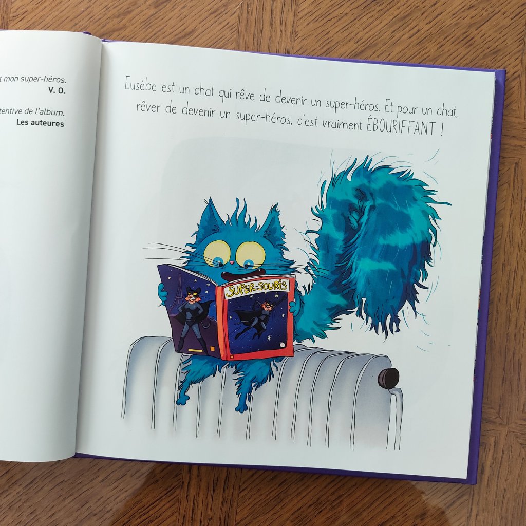 Le résumé : Après avoir sauvé de justesse Rita la tortue, Eusèbe en est certain : il veut devenir un vrai super-héros! Pour un chat, vouloir devenir un super-héros, c’est vraiment ébouriffant! Il faut trouver un costume, un coéquipier d’aventure mais surtout un super pouvoir. Nom d’un chat de gouttière, ce n’est pas une mince affaire!
