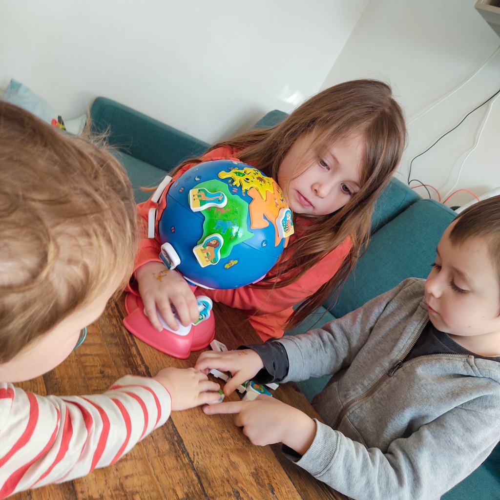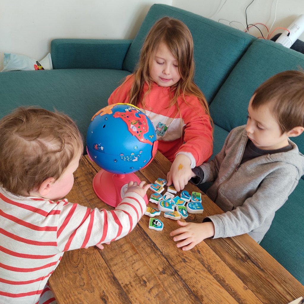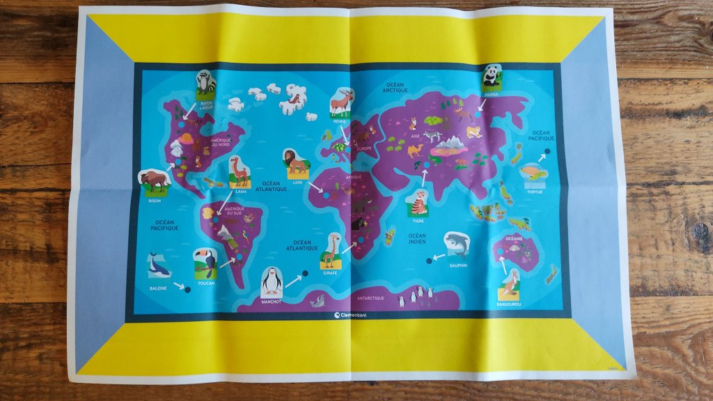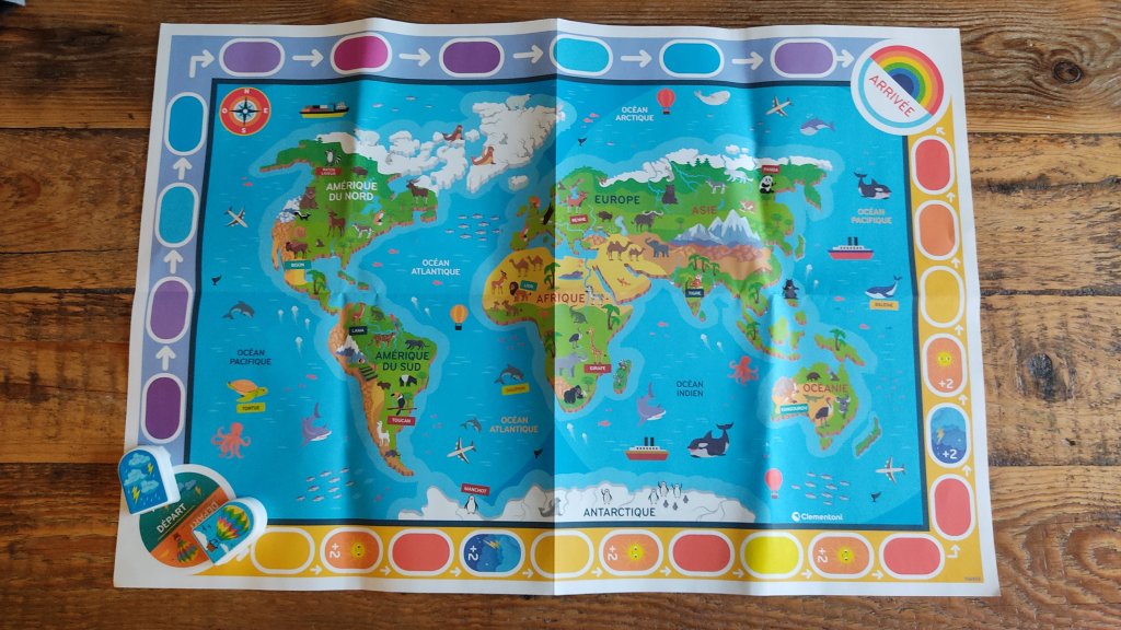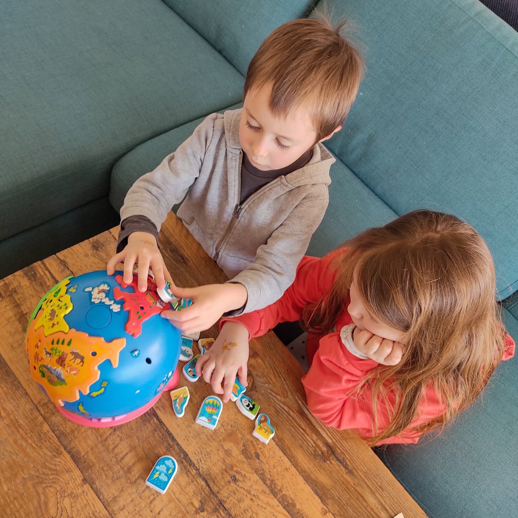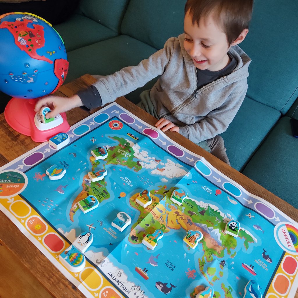Le côté interactif plaît énormément aux enfants, le son est assez fort et la voix bien audible. On a également aimé le grand poster avec le côté planisphère et le côté « jeu de plateau » où le but est de faire le tour du monde en montgolfière avant que la tempête n’arrive.