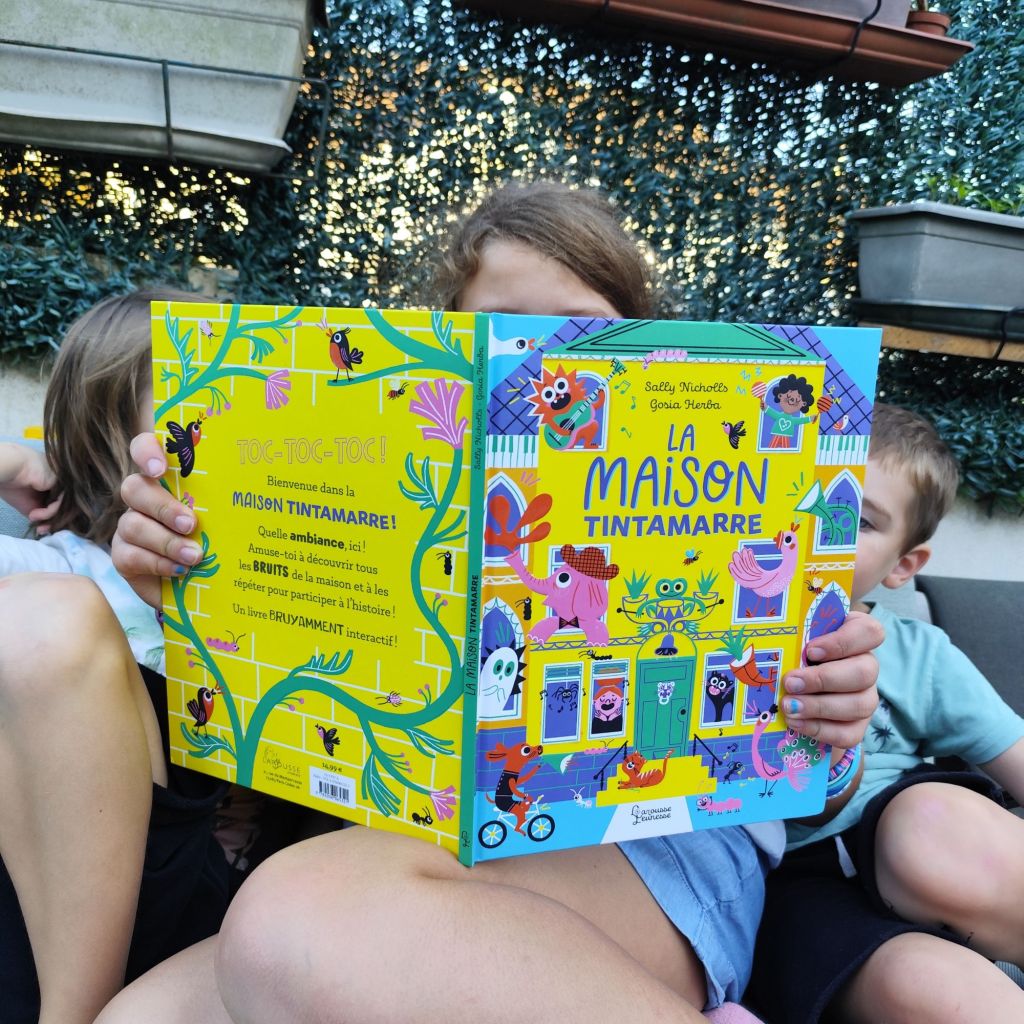Notre avis : Ce livre, c’est un vrai carnaval de sons : tu frappes, tu tapotes, tu écoutes — chaque bruit de la maison devient une aventure. Ici, tu participes, tu répètes les bruits, tu deviens acteur de cette maisonnée qui déborde de vie. Comme dirait les enfants, cette maison est vraiment fofolle! Et ces couleurs parlons-en! Un coup de fouet pour les yeux, on adore! 🌈