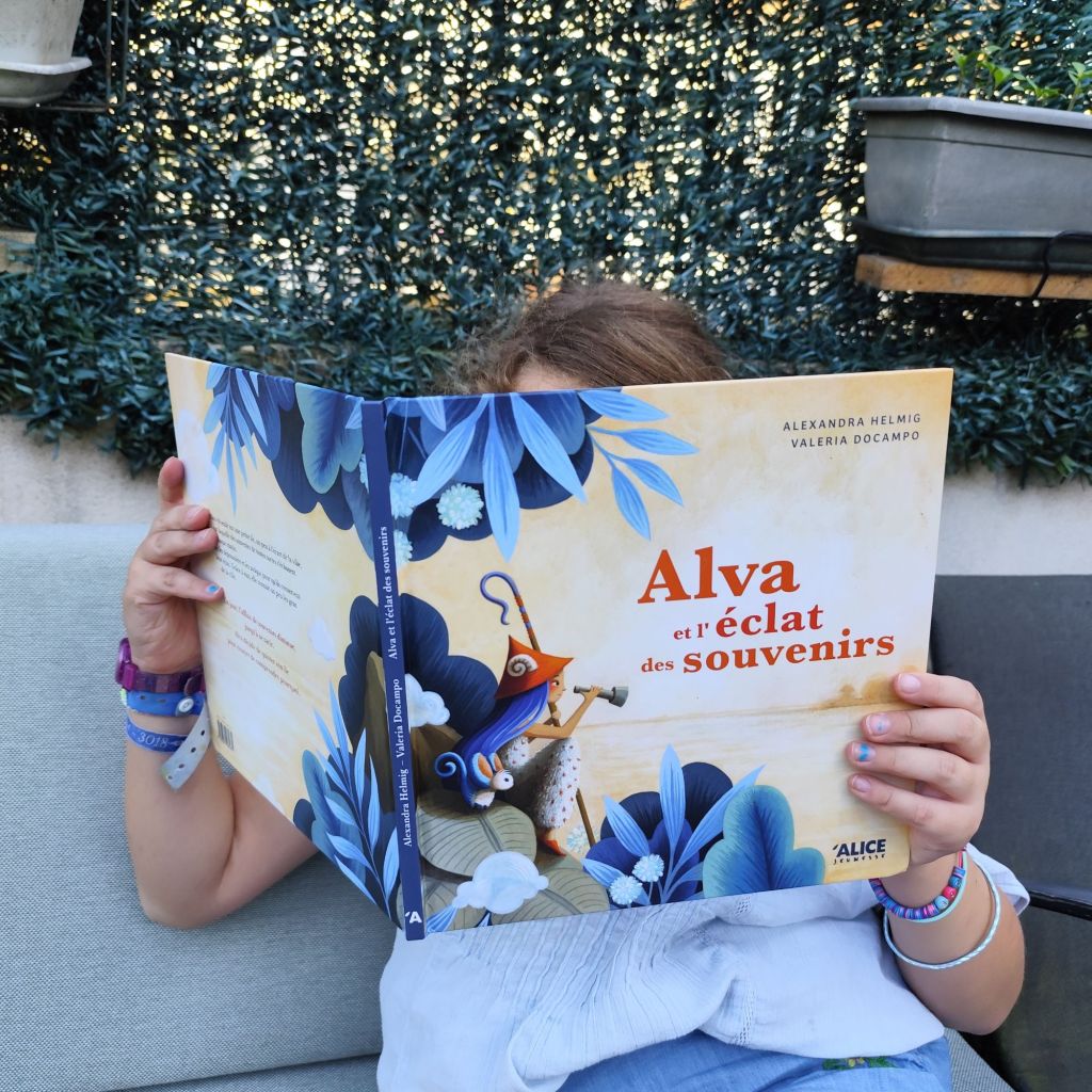 Passons au second livre, « Alva et l’éclat des souvenirs » d’Alexnadra Helmig, illustré par Valéria Docampo.