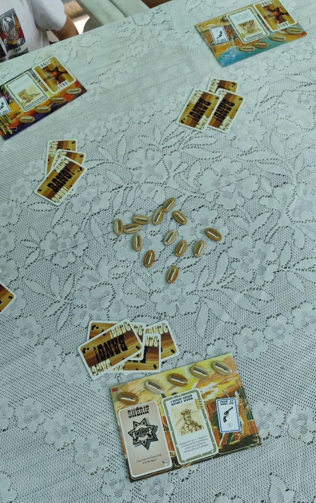 Seul bémol pour nous, Bang! est un jeu où tu dois être minimum 4. Et attention, 4 personnes prêtes à en découdre, va pas prendre n’importe quel badaud qui passe, ou la nièce de 2 ans, l’âge requis est de 7 ans. Le mieux étant d’être même 6 voire 7 pour plus de fun! (Un peu comme un loup garou, plus on est, plus on s’amuse!).
