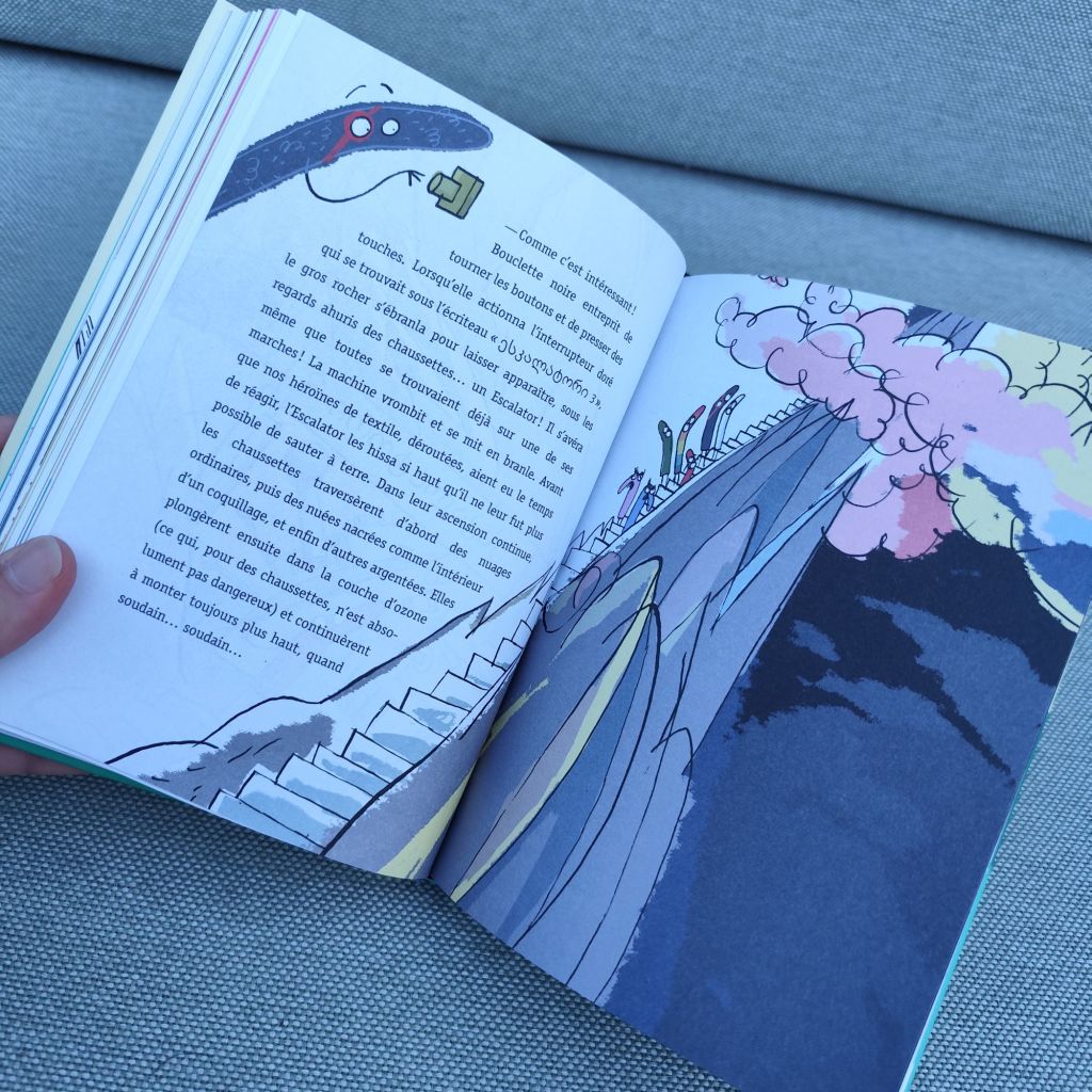 Le résumé : « Bouclette noire part à la recherche de sa soeur jumelle disparue, une chaussette qui, comme elle, a le goût de l’aventure. À son tour, elle se faufile par le trou sous la machine à laver… et la voici bientôt précipitée sur les mers du vaste monde!