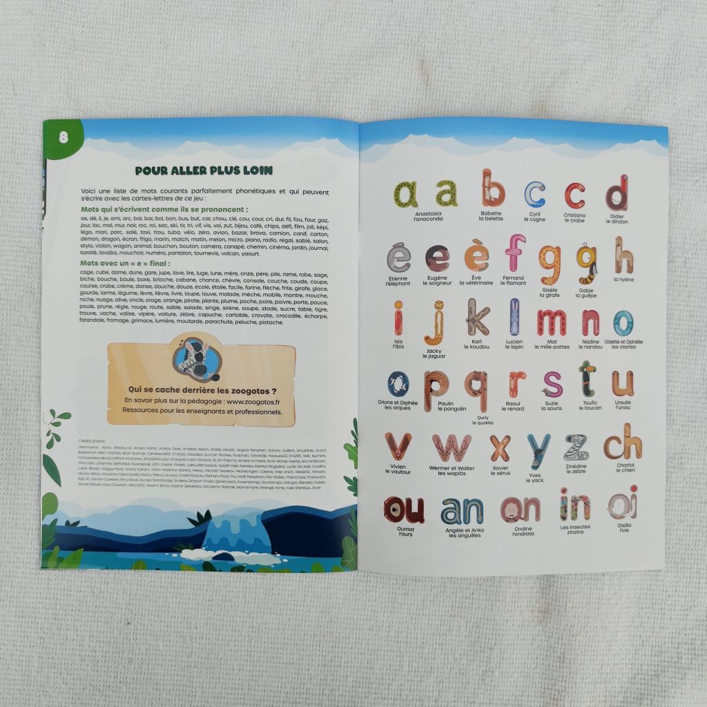 But : Choisir un animal dans le livret et tenter de le retranscrire avec les cartes-lettres ou les Zoogotos.