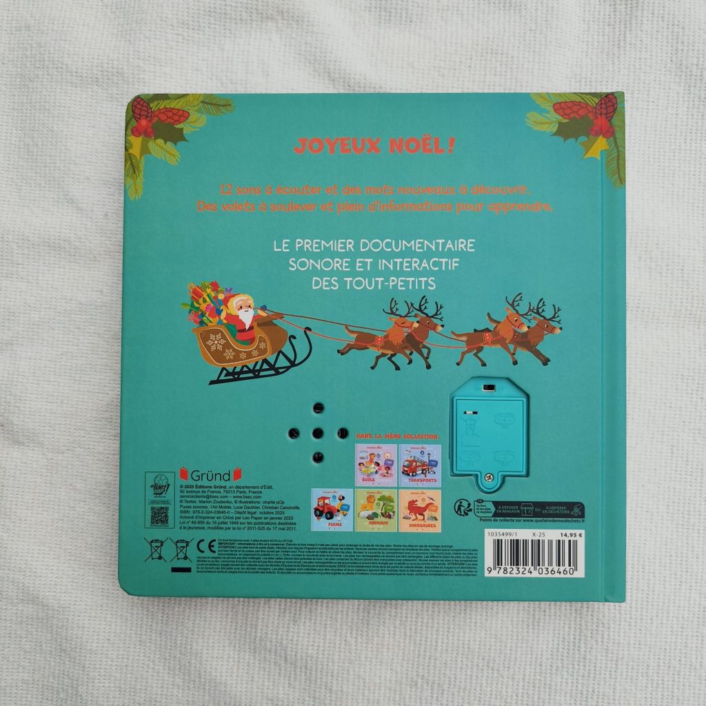 Notre avis : Je ne sais pas chez toi, mais chez nous, les livres sonores ont toujours eu la cote. Alors quand on associe sons et volets à rabattre, on est sur un combo gagnant. Avec en plus un thème plus qu’attractif pour les enfants, c’est sans nul doute le cadeau idéal en cette période. 🎁 N’oublions pas que les pages sont cartonnées et ça, c’est important pour les tout-petits parfois un peu brusques avec les livres 🫣 (Et je parle en connaissance de cause!)