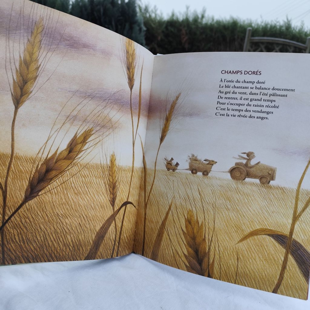 Le résumé : Automne, hiver, printemps, été… chaque saison s’accompagne de ses odeurs, de ses bruits, de ses saveurs et nous offre des sensations et des émotions bien particulières. Cet ouvrage, à travers autant de petites poésies, célèbre les beautés de chacune. À lire à haute voix ou à murmurer, les petits textes accentuent la magie et la beauté des illustrations tout en traduisant en mots les sensations : la chaleur du vent d’été, le murmure des feuilles d’automne, le crissement de la neige en hiver…