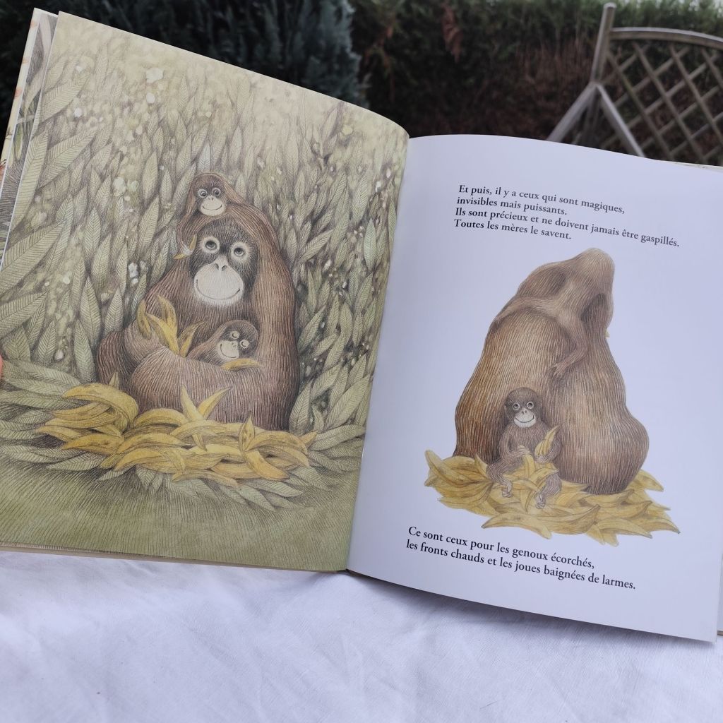 Notre avis : Très doux et poétique, ce livre me semble idéal pour aborder le thème de l’affection et des sentiments avec des enfants un peu plus grands (ou pour des parents/adultes qui souhaitent accompagner une réflexion). Le côté presque abstrait (on devine plutôt que l’on nomme) donne une dimension universelle et sensible, c’est selon moi un bel album pour développer l’empathie, le partage, les émotions. Peut-être moins « ludique » que d’autres albums jeunesse, mais riche en douceur et en poésie.