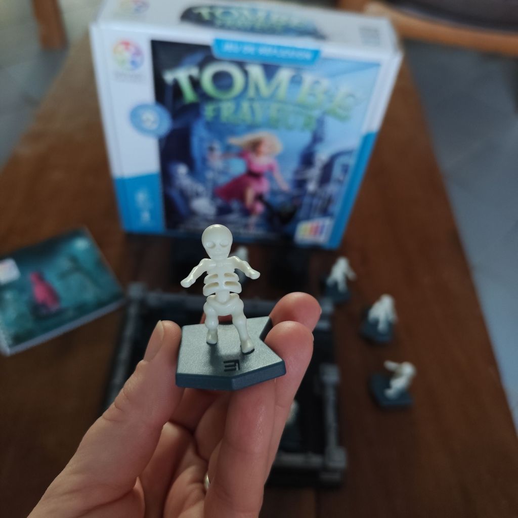 décidée à faire de vous son souper… « Tombe Frayeur » est un jeu de déplacement séquentiel dans lequel vous devrez planifier subtilement tant vos déplacements que ceux des squelettes afin de trouver votre unique chemin vers la sortie. Saurez-vous surmonter votre peur tout au long des quatre-vingt défis du plus simple au plus complexe?