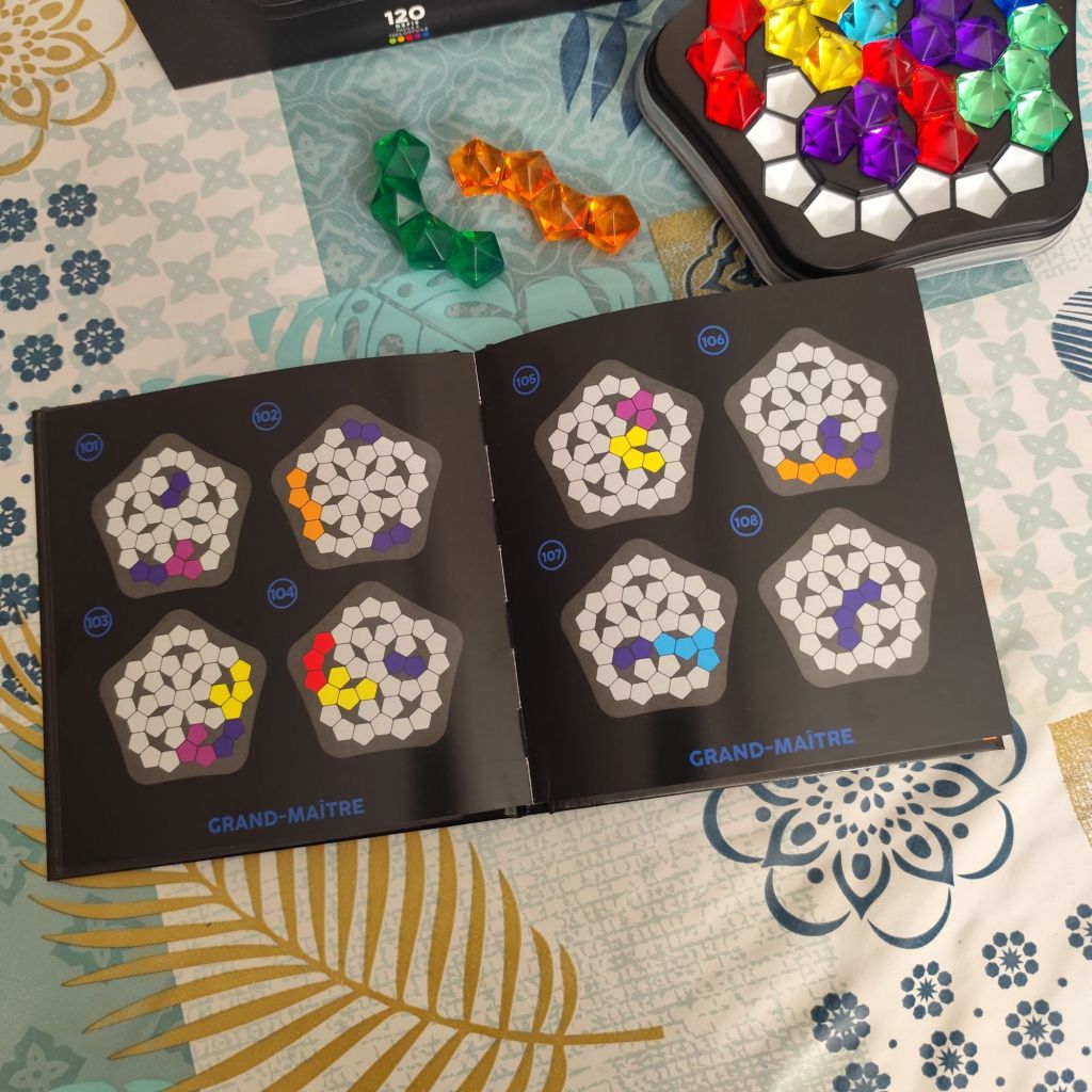Notre avis : Mon préféré je te l’avoue. Un design magnifique, des pièces faciles à prendre en main et un rendu tellement joli. Bon, c’est normalement pour des ados dès 14 ans, mais Zoé, Basile et même Léon ont bien réussi le niveau starter et même quelques défis junior. Sur 120 Défis, il en reste un bon paquet à essayer et je peux t’assurer que certains sont bien corsés (notamment les niveaux maîtres et grand maître). De quoi travailler la concentration et la logique de manière ludique. J’aime aussi beaucoup me dire que c’est un jeu facile à transporter, auquel tu peux jouer 5 minutes ou 5 heures!