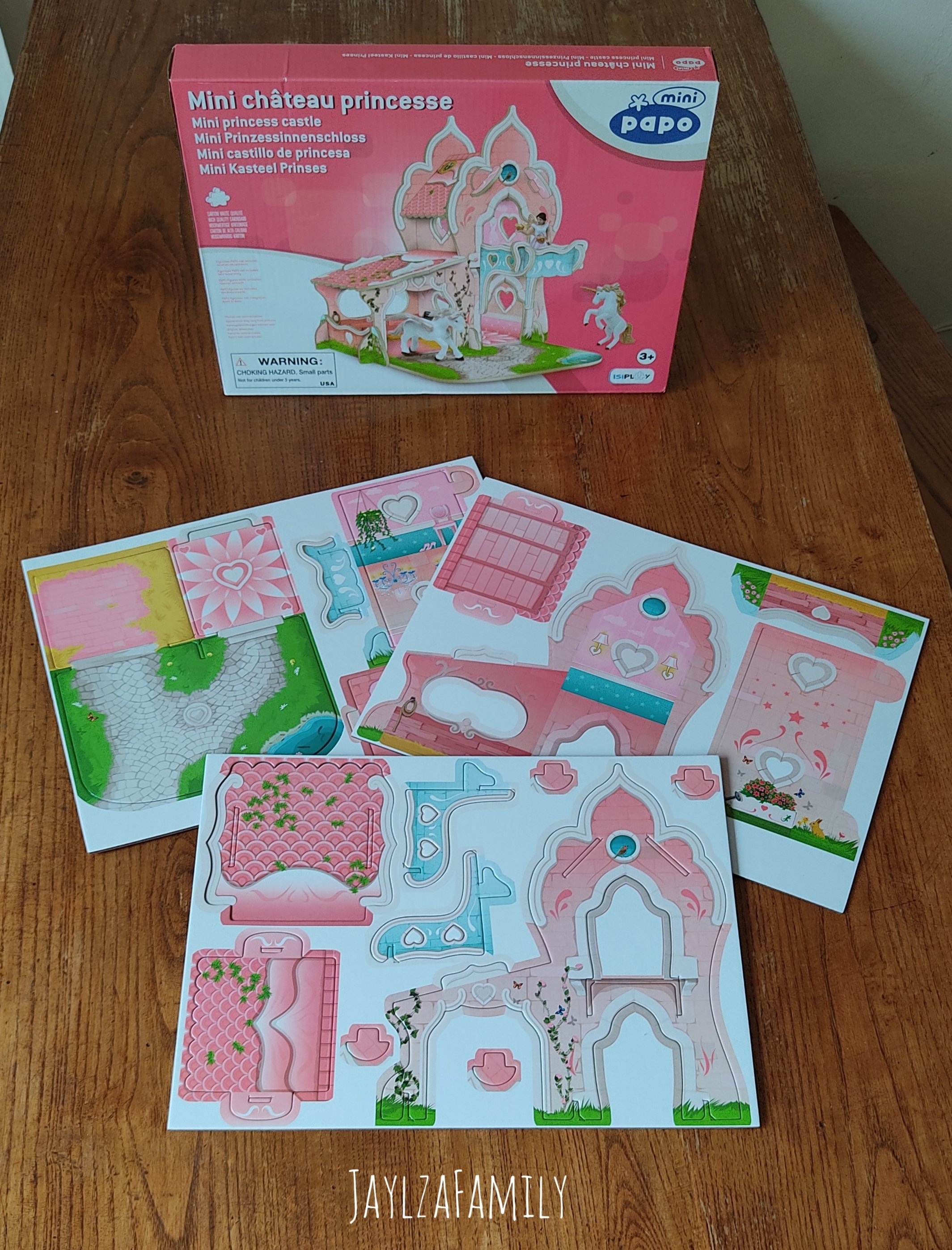 Notre kit se compose de 3 planches à assembler. Le carton est assez épais et très solide pour faire tenir notre beau château, mais également facile à manipuler pour les petites mains qui veulent aider! (Vidéo à la fin!)
