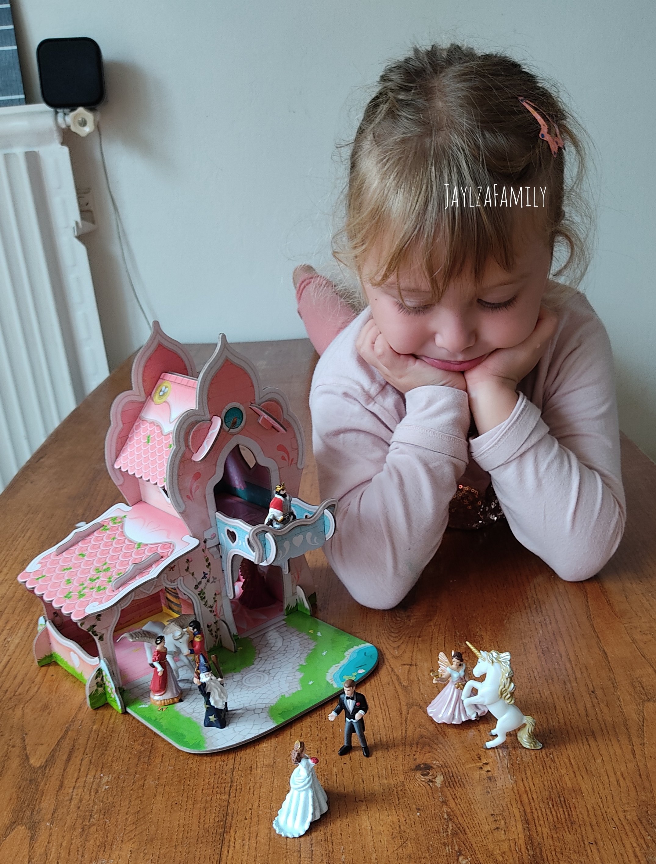 Tout un programme, je te l’accorde. Et comme tu l’imagines, Tchoupine a été plus que ravie de découvrir un monde tout rose, avec sa licorne, ses fées, mais aussi le roi ou encore Merlin et son dragon!